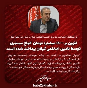 مدیرکل تامین اجتماعی گیلان با تاکید بر اینکه در نیمه اول سالجاری ( بر اساس پرداخت لغایت مرداد و تنظیم لیست مستمری شهریورماه ) مجموع ارقام پرداختی بابت این تعهد بیش از 18/000/000/000/000 تومان ( هجده همت ) میباشد اظهار داشت متوسط پرداختی مستمری ها در هر ماه بیش از 3100 میلیارد تومان است .